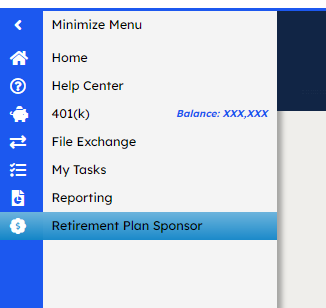 1) After entering your Howard Simon username and password, select Retirement Plan Sponsor from the lefthand side.