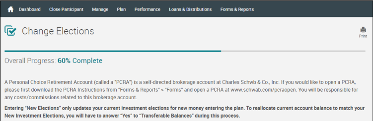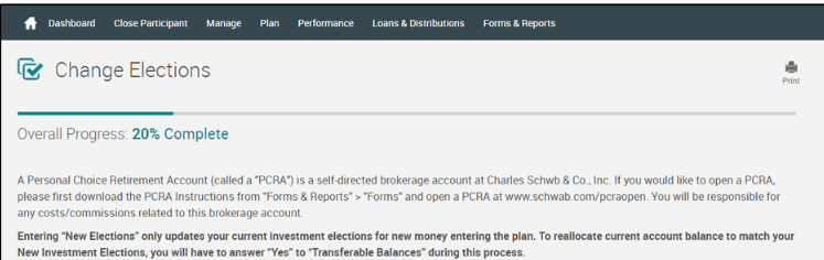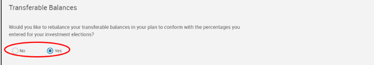 If you want to reallocate your current account balance to the new investment elections, select Yes under Transferable Balances on the next screen.