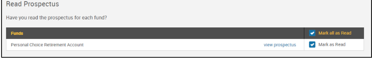 Next, you will be prompted to confirm that you have read the new investment prospectus. Check Mark as Read and then select Next.